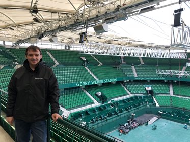 "The Gerry Weber Stadium offers an outstanding view from all angles due to its extraordinary design. The suspension points that are installed are essential for us in order to keep our stadium attractive for more extensive use. As a result, a heavy-duty pre-rig has been installed, which is stretched across the entire stadium width,” explains Managing Director Alexander Hardieck Stadium Manager Torben Griese adds: "We can hang 15 ton extra load in the front-stage area via the two pre-rigging routes."