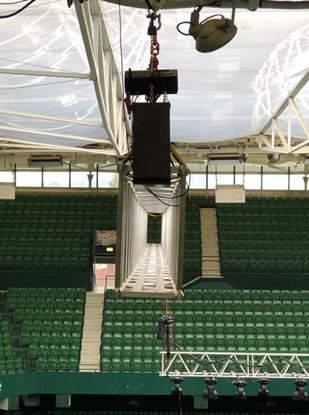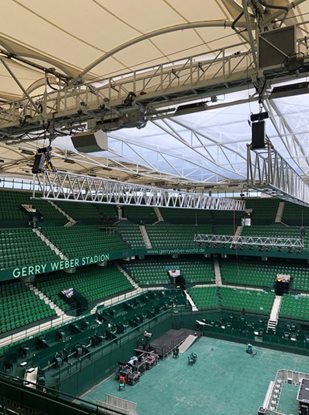 "The Gerry Weber Stadium offers an outstanding view from all angles due to its extraordinary design. The suspension points that are installed are essential for us in order to keep our stadium attractive for more extensive use. As a result, a heavy-duty pre-rig has been installed, which is stretched across the entire stadium width,” explains Managing Director Alexander Hardieck Stadium Manager Torben Griese adds: "We can hang 15 ton extra load in the front-stage area via the two pre-rigging routes."