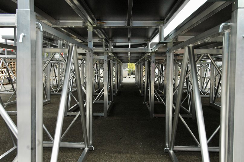 The system is very flexible in height and is able to create all kinds of setups. From simple flat floor into a grandstand or aesthetic great looking multi-level configurations.