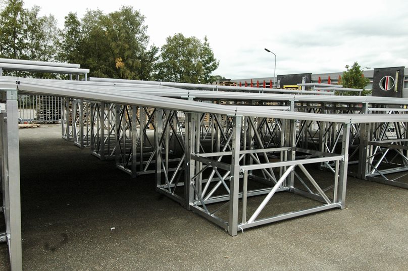 In the pictures: we did the factory acceptance test and build up the complete stage right outside Prolyte HQ in Leek.