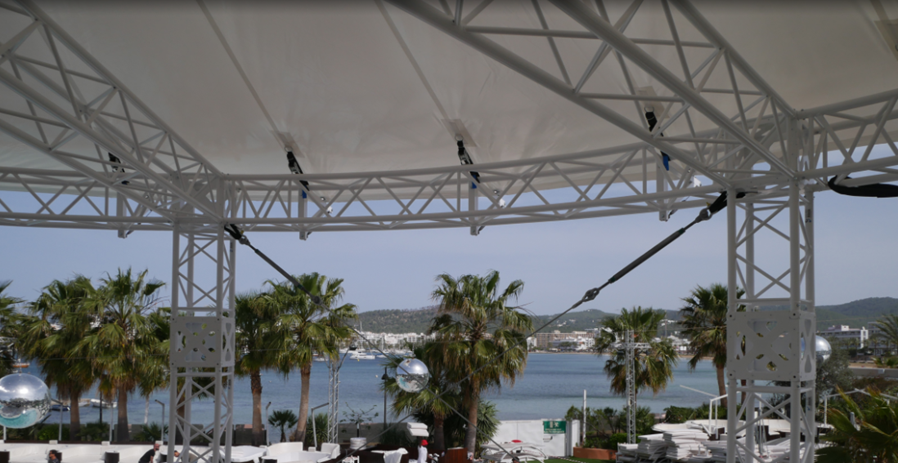 Prolyte delivered a circular roof to Ocean Beach Club in Ibiza, a project which was sold by EES in Spain.