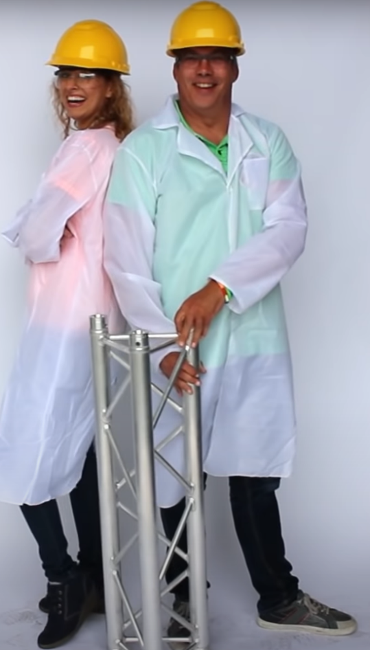 A fun way to learn new things about your favourite products. How many people fit on one stage deck? Is a truss infinitely strong? Can aluminium burn? These are just a few things the Truss Busters would like to test. When Arend isn't distracted by Mariska's looks, he wants to test the most dangerous things. Mariska is very precise and will make sure everything happens according to the safety regulations of Prolyte. In the first episode, they tested the allowable loading for a 2x1m deck. For the full movie(s) have a look at Prolyte’s YouTube channel.