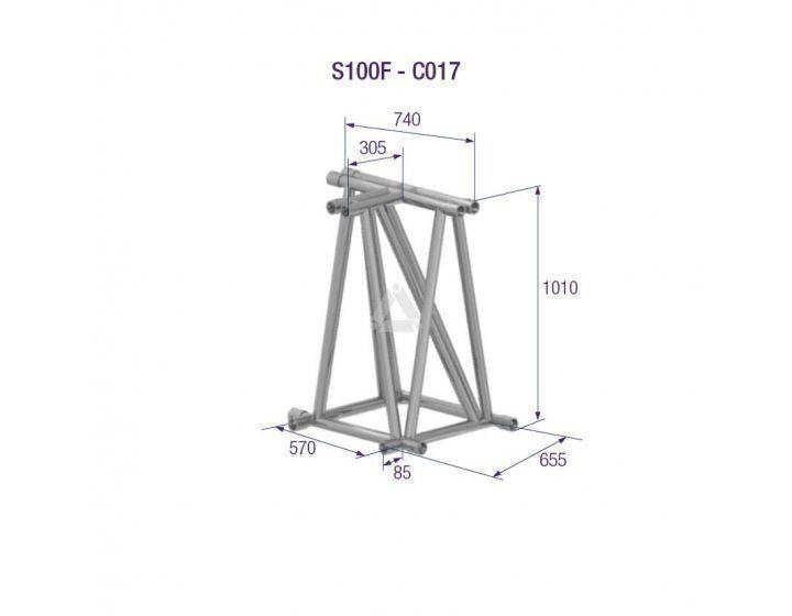 S100F truss is constructed of main tubes (50 x 4 mm) and diagonals (48 x 3 mm). Equipped with the CCS7 conical coupling system, the S100F truss is fast and easy to assemble. Its foldable design can safe up to 75% truck or warehouse space, while the smart placing of the hinges prevents personal injuries. The S100F is suited for vertical loading only. Clever spigot pin orientation makes the assembly fool proof. S100F truss is available in several lengths and a range of corners and accessories.