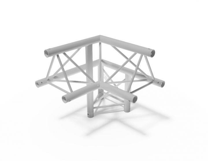 The standard corners for the E20 series truss trusses are available in a 2-way to 6-way connection and with 45 to 120 degree angles, to create any structure you require. The standard corners offer optimum flexibility to complete your system to adapt to all kind of applications. The E20 truss and corners connect using the CCS4 conical coupling system.