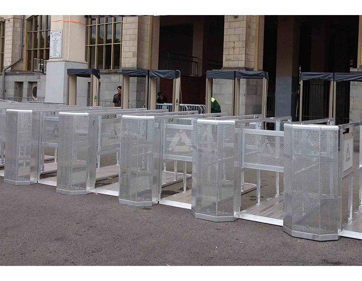 Line-up gates are designed as check points for ticket collection and to manage queuing crowds. The Prolyte LineUpGate offers a simple and efficient tool to control your audience inflow at events or festivals. The modular system can be extended with as many entry gates as you need and can be connected to the standard barriers, creating one interconnected and safe system. The LineUpGates are designed to remain upright under substantial pressure. The entry gate is 60 cm wide and offers controlled audience entry, passing one person at a time through the gate. If the situation requires, the gates can be closed with one simple handle, stopping the inflow of audience in a controlled way. The LineUpGates can be branded with signs or banners displaying your event logos by standard mounting options.