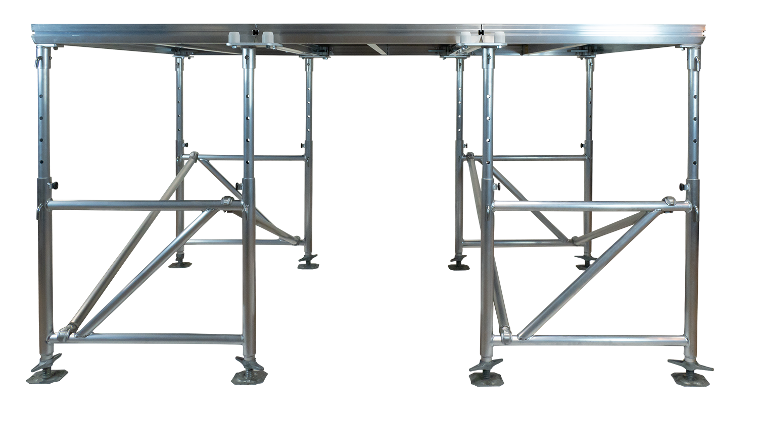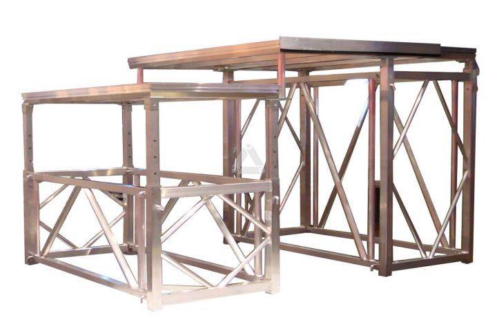 EasyFrames B, C and D are highly versatile frames with spindle feet at the bottom to level your stage to an exact position. Furthermore, they are lightweigt and easy to assemble requiring just one technician.