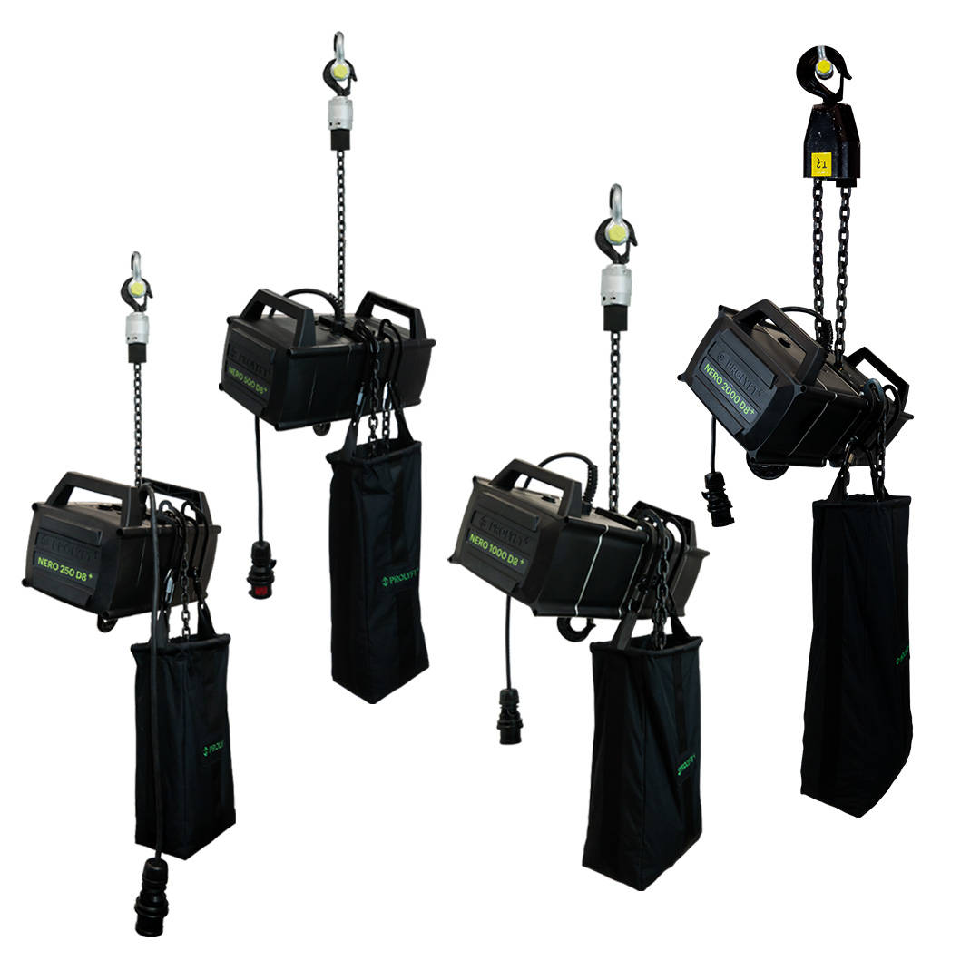 The wide range of Prolyft hoists are designed to meet the increasingly exacting demands of the entertainment market. These foolproof hoists are designed to withstand rigorous transportation and rough handling, and can be serviced just about anywhere – even if it is 12 metres above the stage!