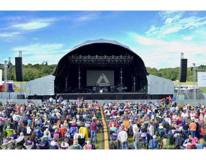 Based on H40V truss, the Polygon XII roof system offers a multi-functional and cost-effective solution. The straight truss lengths convert into a curved “tunnel” type roof with the addition of special corner sections. Side stage areas and the cantilever construction are integrated in the design. The back wall is based on standard kedar profile and can be easily removed, may weather circumstances ask for it.