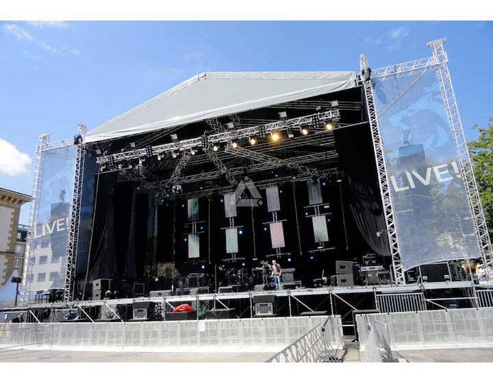 The ST Roof is a tower-based structure with a pitched roof, a design that inherently offers optimum strength. The larger ST Series offers flexible possibilities for creating stage dimensions up to 20 × 14 m. Technical specifications available on request.