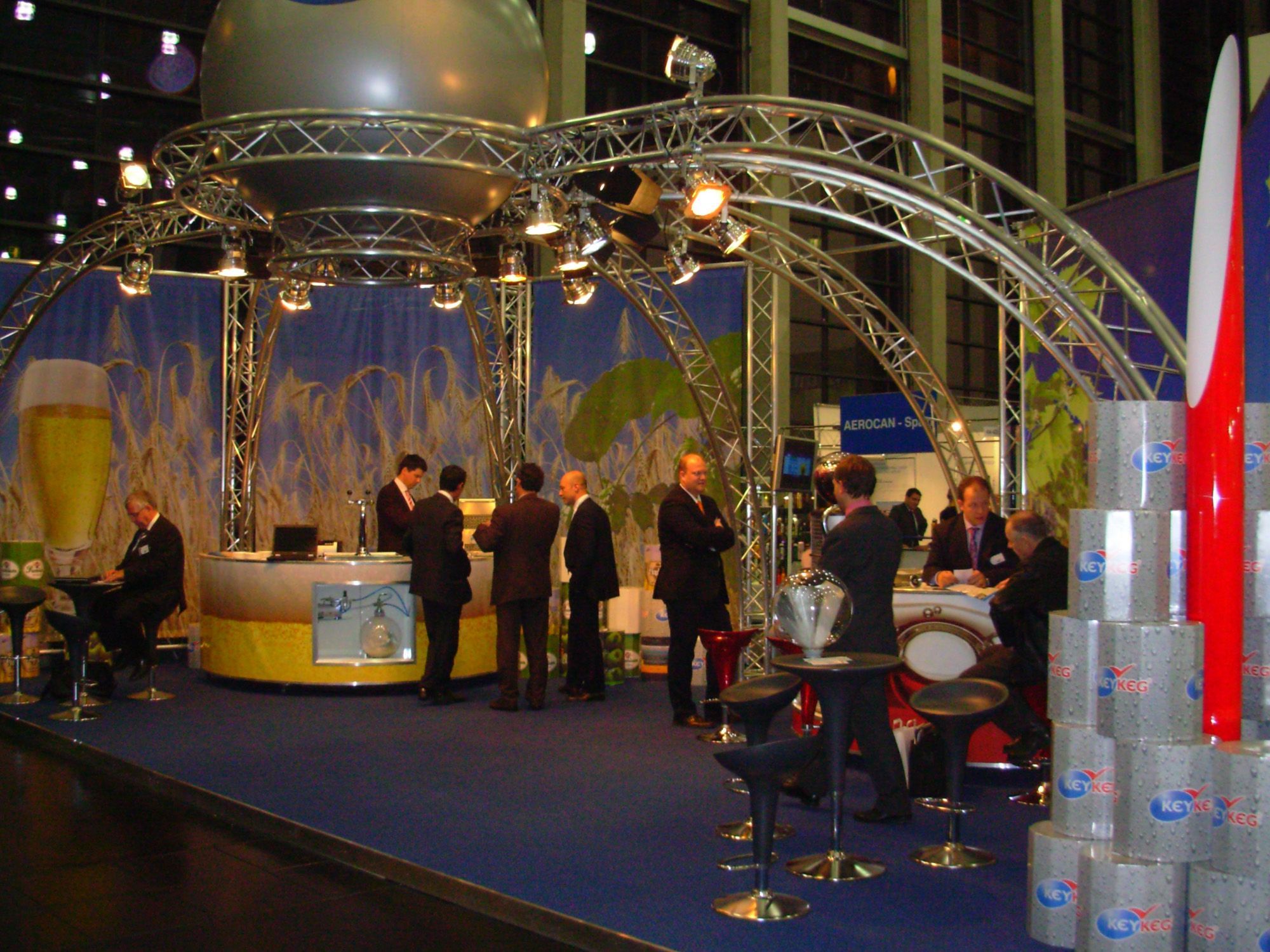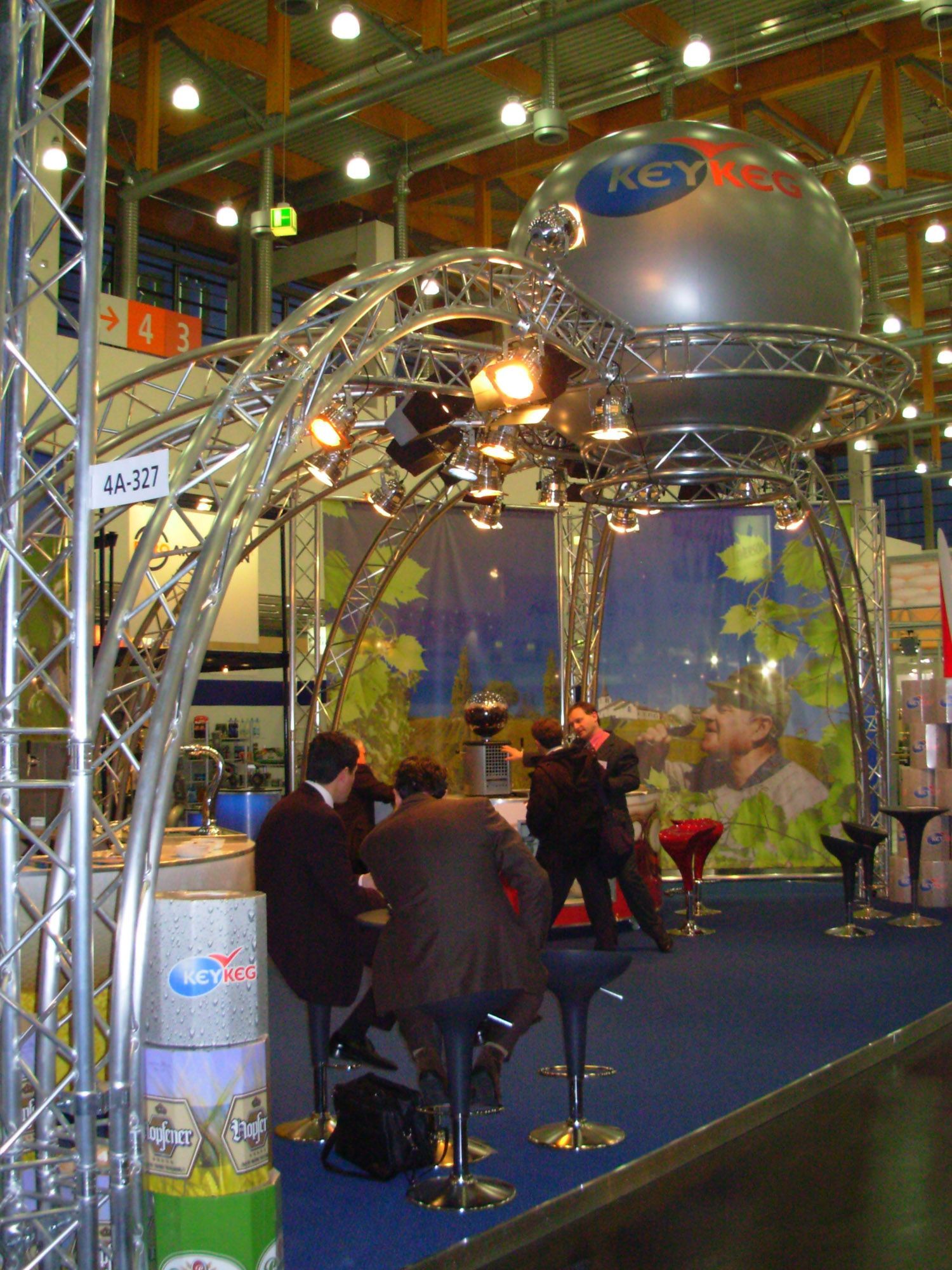 The complete structure is based on standard arches; however the central circle is made from one piece, presenting quite a challenge to our circle department. Moreover, by using as much standard truss as possible, the stand was easy to build, as Donald Cok from LWC commented: “We started building late, but were the first to be ready”. Looking for an exceptional and attractive stand design, the client was very content with the result. “Lightweight Containers are very content with this stand design. The ease of assembly and the limited amount of time we needed were really an eye-opener to us” stated Robert-Jan Knoppers of LWC.