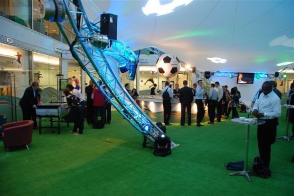 truss structure that both accommodates the lighting design and a canopy that instantly turns this structure into spectacular, but cozy meeting room.